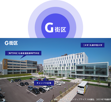 大学と専門学校を中心に、地域交流と産学連携を推進するG街区